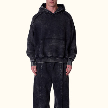 नए आगमन के साथ फ्रेंच टेरी हेवीवेट पुरुष हुडी कस्टम एसिड वॉश विंटेज नियमित फिट स्ट्रीटवियर पुरुषों के लिए